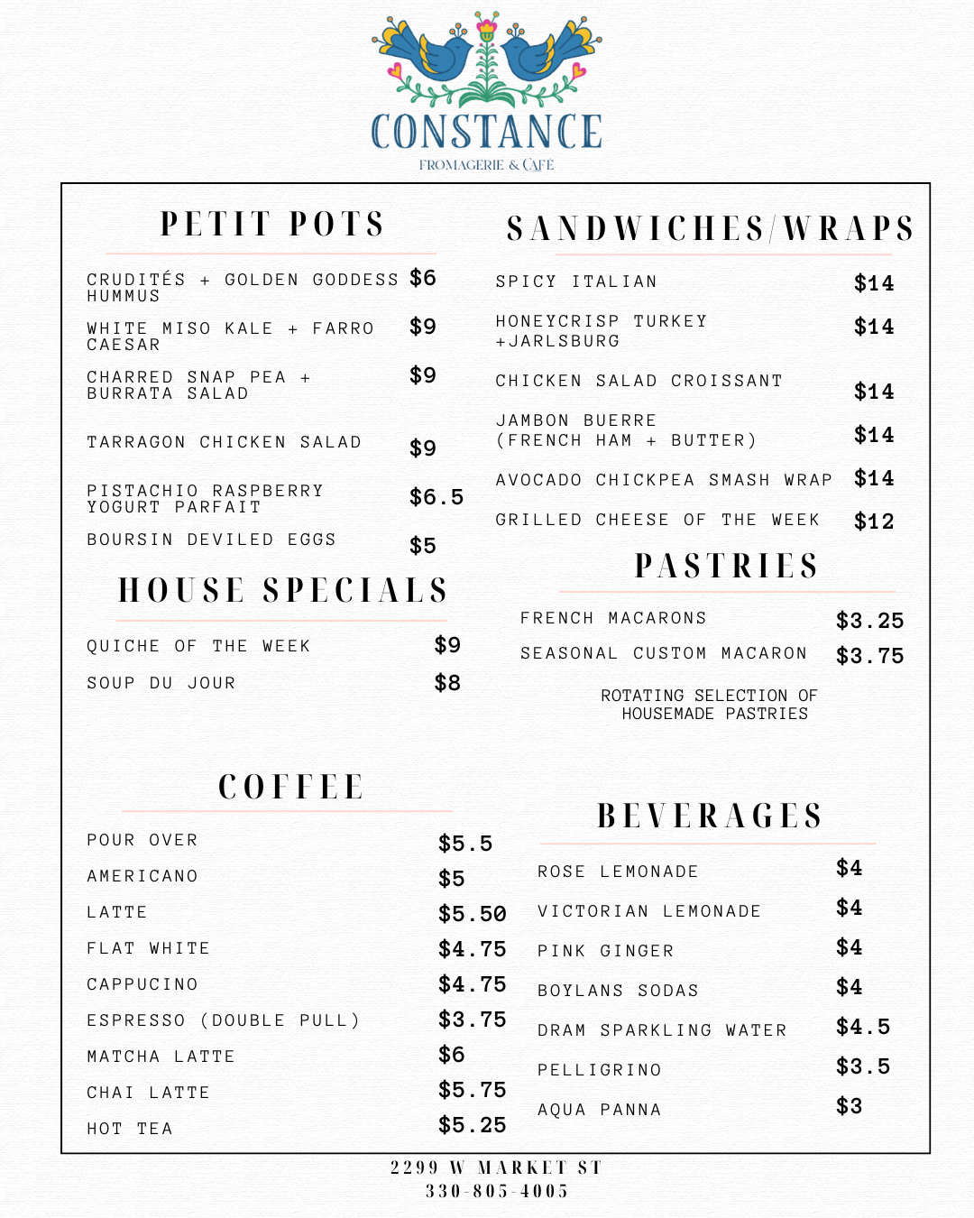 At Constance Fromagerie & Cafe, we cherish the belief that the most meaningful way to spend quality time with loved ones is to linger around beautiful food. That’s why we not only offer a beautiful space to gather and enjoy a delicious meal, but also a thoughtfully curated selection of artisanal cheeses, charcuterie and gourmet accompaniments to elevate any event, big or small.